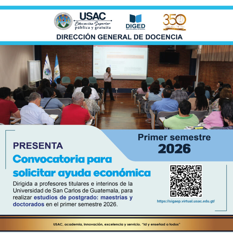 La ayuda becaria que otorgará la Dirección General de Docencia (DIGED) para el primer semestre del presente año, permitirá al profesor titular o interino de la USAC financiar de forma total o parcial la matrícula y/o las cuotas de estudios de postgrado. Esta ayuda cubrirá estudios en modalidad: presencial, semipresencial o virtual en la USAC. La cantidad máxima que se aprobará para maestrías es de Q 4,000.00, y para doctorados Q 8,000.00.